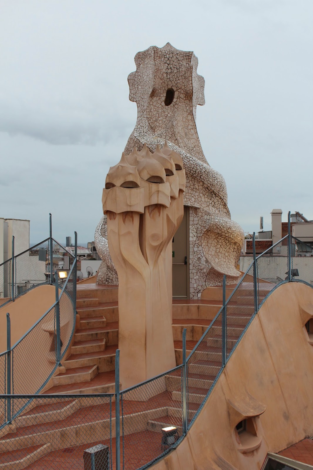 Continuando o passeio, desta vez descendo o Passeig de Gràcia, encontramos a casa Milá – La Pedrera – e as famosas chaminés do seu terraço.