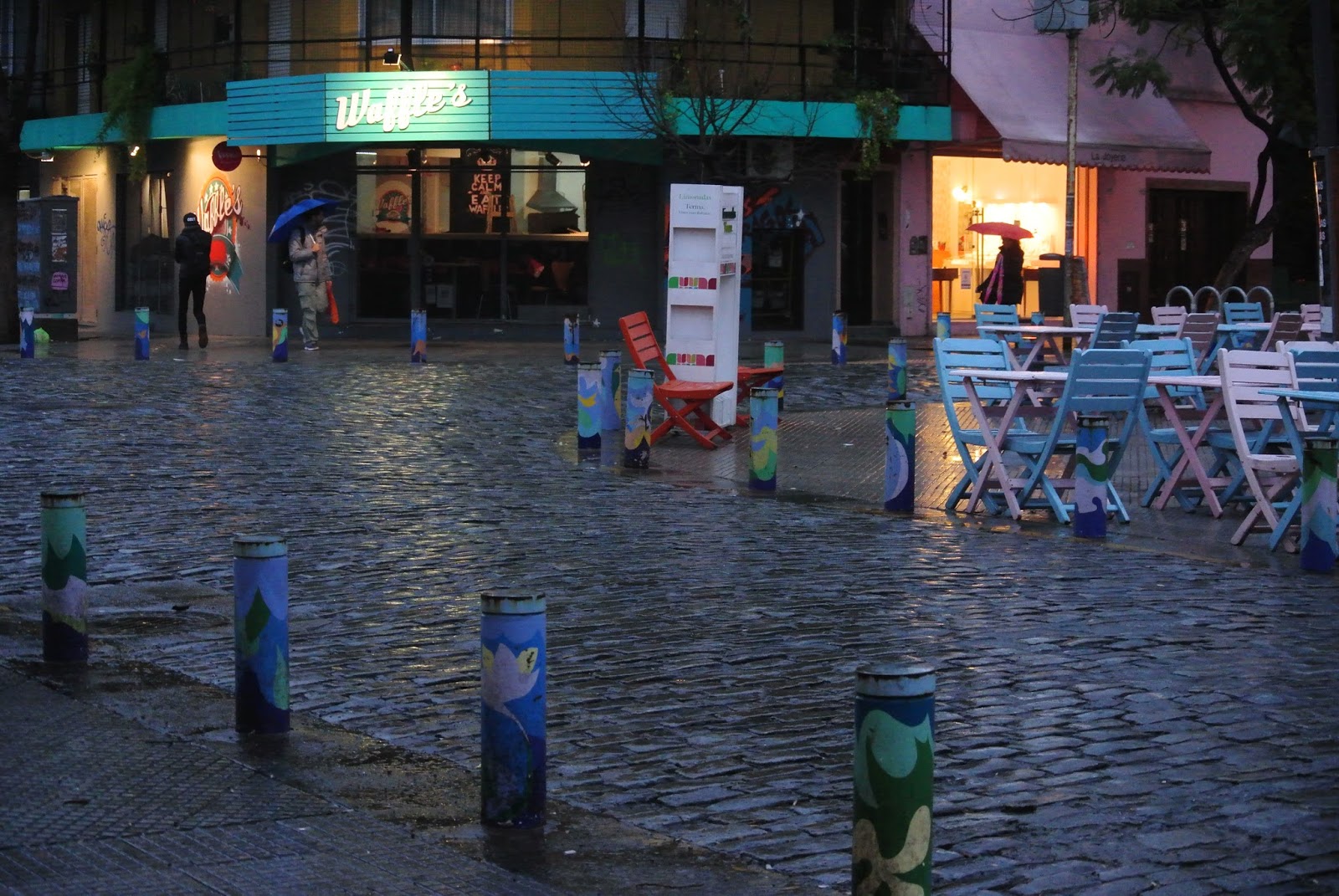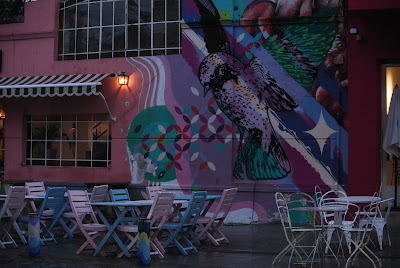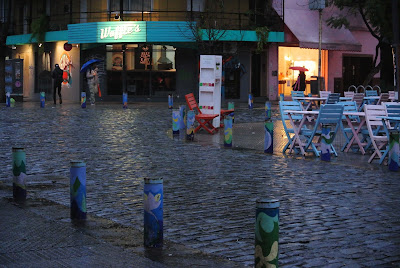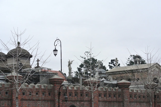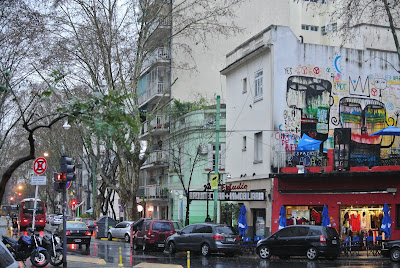 O passeio começou perto do famoso cemitério onde o túmulo da família Duarte, onde se encontra sepultada Evita Perón, atrai centenas de turistas, percorreu as avenidas e os jardins junto ao rio de la Plata onde se encontram o Museu das Bellas Artes e a Floralis Generica, continuou até Palermo, onde o museu MALBA foi o local ideal para me abrigar de mais uma chuvada. Continuando agora para o interior do bairro visitei ainda o Museu Evita Perón e acabei o dia na zona da Plaza Serrano. Já debaixo de chuva mais uma vez, e regressada à Avenida Santa Fé (uma das mais movimentadas e que valeria a pena fazer a pé de novo até à 9 de Julio) acabei por apanhar o metro por imposição do São Pedro.