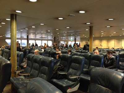 Os barcos que fazem a travessia BA – Colonia, são enoooormes. Levam carros, autocarros, camiões, mercadorias, tudo o que possam imaginar e também passageiros, em primeira ou segunda classe. A segunda classe é bem confortável, as poltronas são óptimas, tem cafetaria e até uma lojinha dutty free.