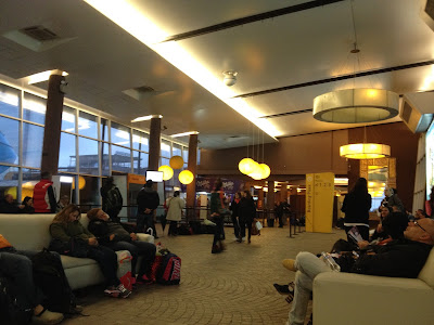 Há muito poucos lugares disponíveis à janela, como podem ver na fotografia abaixo, e nenhum lugar exterior onde tirar umas fotos, o que me desiludiu bastante, portanto se querem tentar ver alguma coisa para fora, façam fila desde cedo para garantirem o vosso lugar.