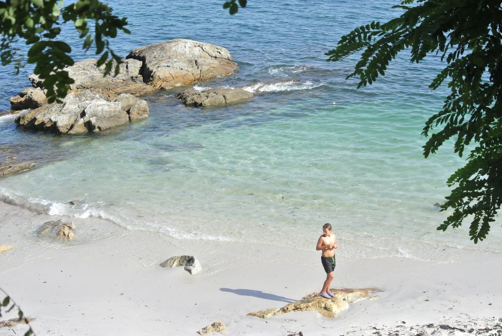Ilha de Ons – Ría de Pontevedra – Esta ilha, visitei no ano passado e apesar de já estar muito mais ocupada o que pode ser uma desvantagem para quem procura o contacto com a Natureza, também é uma vantagem se procuram um fim-de-semana de praia um pouco mais confortável. Aqui há cafés, restaurantes e camas onde passarem uns dias. Não explorei as trilhas porque estive apenas umas horas por lá mas existem vários percursos aconselhados para conhecer a parte mais selvagem da ilha. Ao contrário das Cíes que tem uma única praia mas imensa, a Ilha de Ons tem várias prainhas maiores ou mais pequenas no lado virado à Ría. Os barcos saem do porto de Portonovo, perto de Sanxenxo.