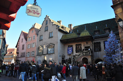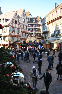 Achei o mercado de Natal de Colmar diferente de todos os outros que já tinha visitado, claro que havia barraquinhas nas ruas (principalmente nas pracinhas) onde se podia beber Vin Chaud, comer um crepe ou comprar decorações de Natal, mas o forte era mesmo o espírito da cidade, a decoração das lojas e o ar de satisfação das milhares de pessoas que andavam pelas ruas.