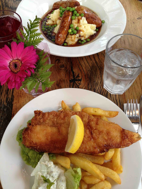 Provavelmente ouviram falar a vida toda de quão péssima é a culinária inglesa. É verdade que não é lá essas coisas, mas também não é a pior de sempre, e até se comem algumas coisas interessantes por lá. Começando logo pelo pequeno-almoço, é verdade que chamar aquilo pequeno-almoço é uma força de expressão, mas duas horinhas depois de ter começado a caminhar pela cidade a todo o gás, qualquer coisa que tenha bacon e ovos já será muito bem-vinda. E ainda traz tomates e feijões para os mais corajosos. De pratos de refeição mais tradicionais não podem escapar do fish and chips, seja num sítio mais fancy ou mesmo numa barraca de rua, e os pubs ainda costumam oferecer também a opção das salsichas com as mashed potatoes (que vêem na imagem) – é um bocadinho doce para o meu gosto, mas não é mau – e o famoso almoço de domingo, o Sunday Roast. Comer é bastante caro em Londres, mas se formos para outras opções que não os pratos típicos podem encontrar restaurantes verdadeiramente estrela Michelin. Todo o chef que se preze tem restaurante na cidade, pronto a delapidar o nosso bolso. Caso estejam mais para umas refeições low cost, há sempre o fast-food que nunca nos deixa ficar mal, o Prêt-a-Manger – uma cadeia de comidas rápidas mas com várias opções saudáveis de saladinhas e sanduíches – ou o Nando’s – uma cadeia bem portuguesa de frango de churrasco – muito mais caro que o nosso, mas em conta para padrão inglês.Por favor tenham muito cuidado, está marcado em qualquer lugar para atravessar a estrada para que lado devem olhar, mas não é assim tão fácil quanto pode parecer. Já vi muito europeu continental a ser quase atropelado por causa da ideia de ter o trânsito a circular pelo lado contrário!