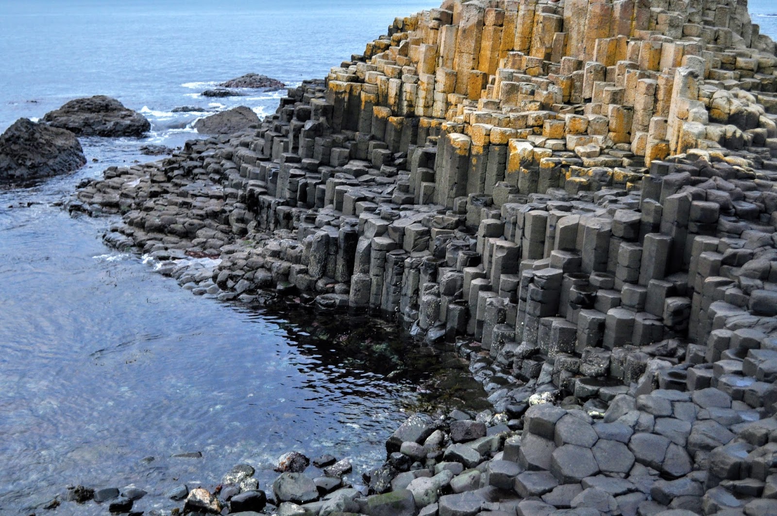 Existe uma pequena extensão de formação rochosa semelhante numa pequena ilha da costa da Escócia, que corrobora a lenda e lembra aos geólogos que aqueles dois pedaços de terra já estiveram bastante mais perto um do outro. No local existe agora um pequeno museu com explicação sobre o fenómeno geológico e a sua lenda, uma cafeteria e uma lojinha com coisas imperdíveis. Só visitei a loja porque gastamos o resto do tempo todo a percorrer a praia até à zona da calçada e a tirar milhares de fotografias. Há um mini bus que faz esse percurso entre o centro de interpretação e a calçada, cerca de 20 minutos de caminhada, mas o passeio é bonito, ao longo de uma baía basáltica.