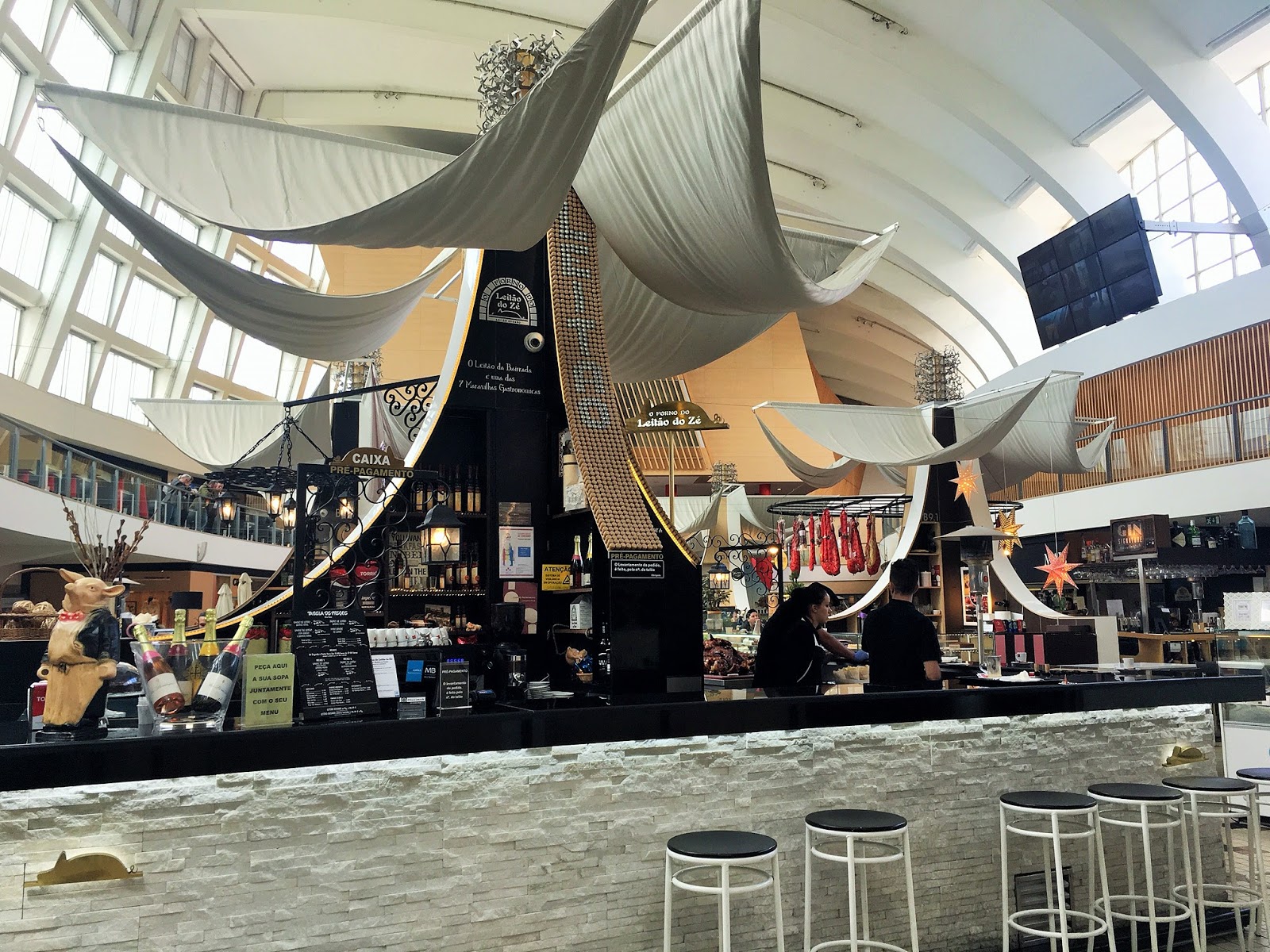 No interior o espaço central está ocupado por bancas de comida/bebida, refeições rápidas, organizadas de forma temática. O cantinho da Madeira, o dos leitões, as cervejas internacionais, os gelados e batidos de frutas, os chocolates…Para além disso tem ainda óptimas opções como a Sandinha (uma sande de francesinha que é um snack perfeito), a Leitaria da Quinta do Paço, uma Cevicheria, Sushi, e muito mais.