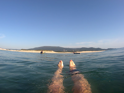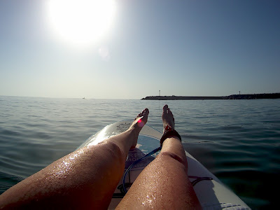 Agora deixo-vos com as fotografias de ontem, que tirei com o meu brinquedo novo (uma Action Cam da Denver) e uma prancha de paddle, que é muito engraçado para fazer de espreguiçadeira, porque em pé estive 2 minutos e ainda fiz uma nódoa negra numa canela quando a primeira ondulação me atirou à água. Se já estão todos roídos de inveja, sintam-se convidados para aparecer em Âncora!
