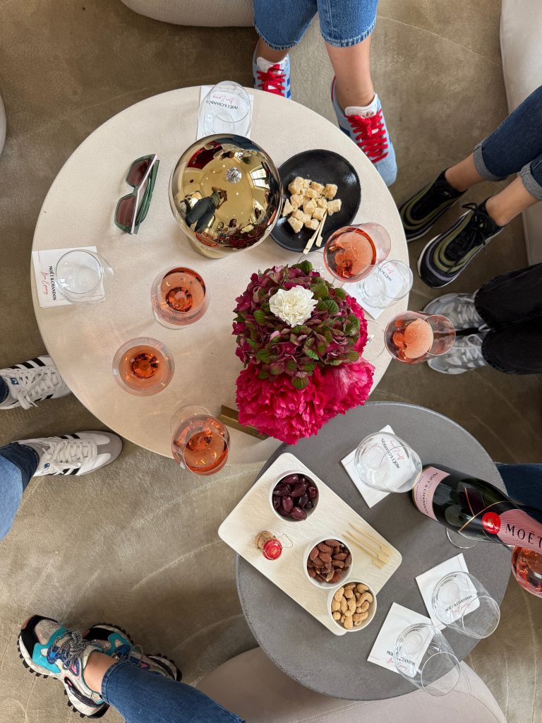 Fundada em 1743 por Claude Moët, esta casa é sinónimo de luxo, tradição e excelência — e a experiência que nos proporcionaram foi tudo isso e muito mais. Começámos pela elegante loja à entrada do edifício principal, onde todas as preciosidades da marca estão em exposição, como se de um museu se tratasse, e disponíveis para compra (e envio direto para casa, claro). Mas o verdadeiro encanto começou quando nos sentámos no bar para a tão aguardada prova.