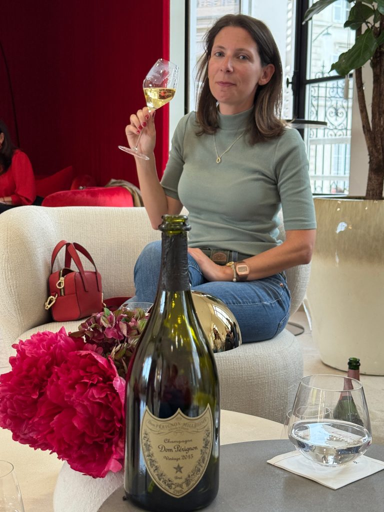 Fomos recebidas com simpatia e profissionalismo pela Eva, que nos conseguiu uma mesa perfeita e nos guiou com paixão e conhecimento por uma viagem sensorial inesquecível. Provámos três champagnes distintos: o Brut Rosé, vibrante e cheio de personalidade; o Brut Impérial, clássico e refinado; e, claro, o Dom Pérignon Vintage, que nos arrancou um “wow” coletivo e unânime. Um momento para guardar na memória — as suas borbulhas finíssimas a explodir suavemente na boca, criando uma sensação quase etérea, como se estivéssemos a saborear estrelas.