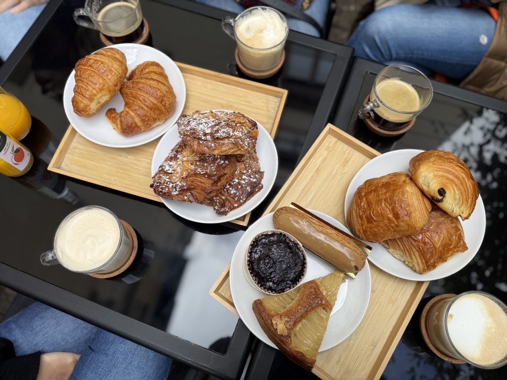 O pequeno-almoço foi um verdadeiro momento parisiense: sentámo-nos numa pastelaria acolhedora e deixámo-nos levar pelos sabores de lattes cremosos, croissants de amêndoa, éclairs de café e o inevitável pain au chocolat. Tudo servido com aquele toque de elegância descontraída que só os franceses sabem dar.