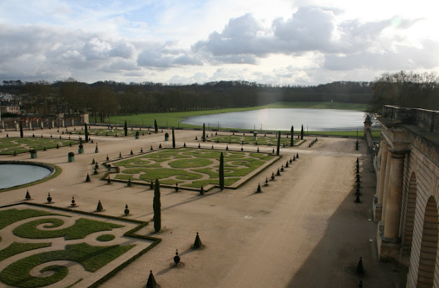 Os jardins de Versailles. Parte integrante do Palácio Real, os campos de Versailles contêm um dos maiores jardins formais alguma vez criasdos. Desenhados por André le Nôtre, um extenso conjunto de fontes, canais, bustos, esculturas, árvores, relvados, canteiros florais e pequenos edifícios foi mandado construir, juntamente com o Palácio real por Luís XIV (o Rei-Sol) sendo aumentado e remodelado nos reinados seguintes.