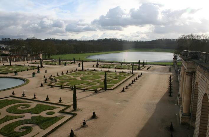Os jardins de Versailles. Parte integrante do Palácio Real, os campos de Versailles contêm um dos maiores jardins formais alguma vez criasdos. Desenhados por André le Nôtre, um extenso conjunto de fontes, canais, bustos, esculturas, árvores, relvados, canteiros florais e pequenos edifícios foi mandado construir, juntamente com o Palácio real por Luís XIV (o Rei-Sol) sendo aumentado e remodelado nos reinados seguintes.