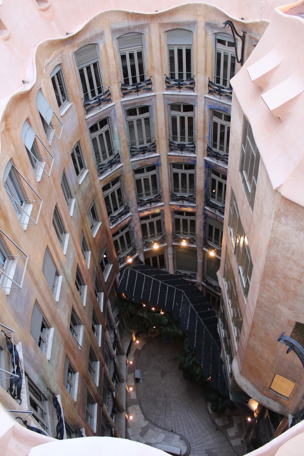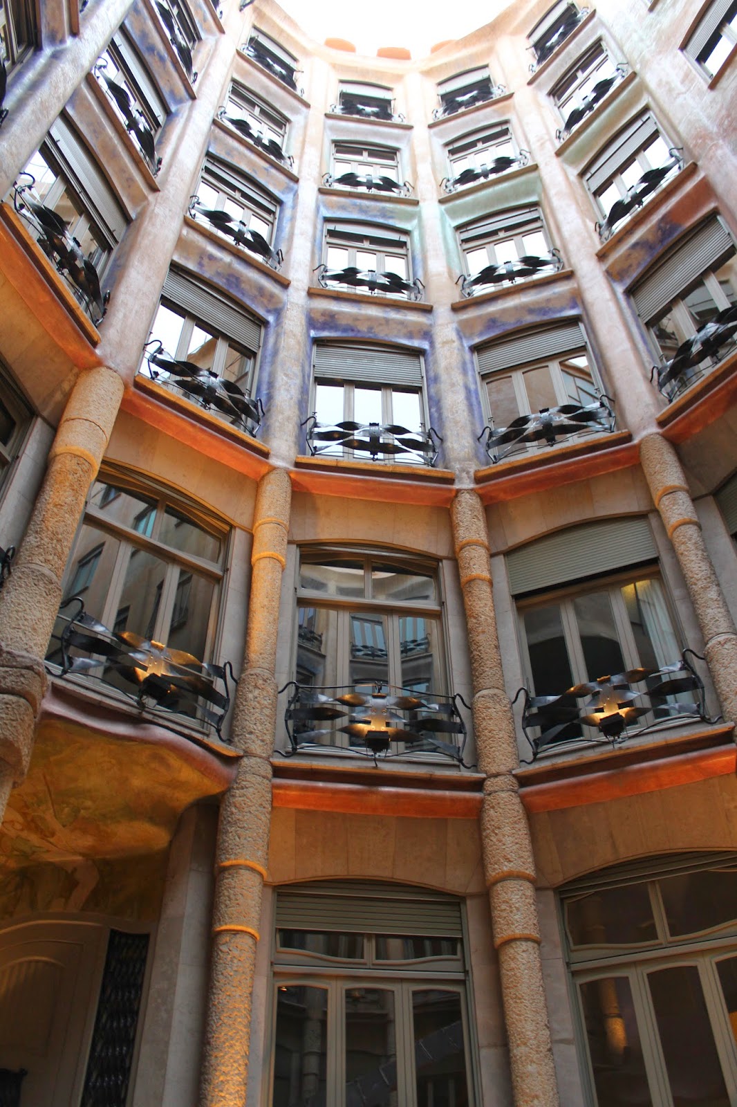 Continuando o passeio, desta vez descendo o Passeig de Gràcia, encontramos a casa Milá – La Pedrera – e as famosas chaminés do seu terraço.