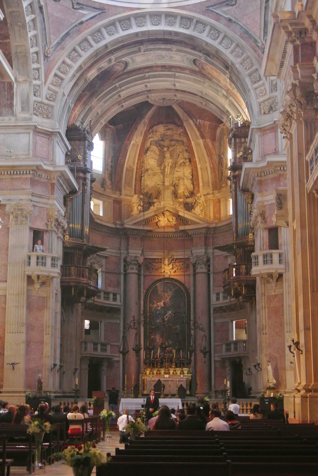 Os trabalhos de construção começaram por um modesto projecto que tinha como objectivo abrigar 109 padres franciscanos, mas com a chegada aos cofres do estado do ouro vindo do Brasil, D. João V e o seu arquitecto Johann Friedrich Ludwig iniciaram planos muito mais ambiciosos sem se poupar a despesas. A construção empregou 52 mil trabalhadores e o projecto final acabou por incluir um convento que permitia abrigar 330 frades, um palácio real e uma das mais belas bibliotecas da Europa, decorada com mármores preciosos, madeiras exóticas e muitas outras obras de arte. A Basílica principal foi consagrada em 1730 aquando do aniversário do rei. O Palácio tornou-se muito frequentado pela família real pois a sua extensa tapada permitia grandes caçadas.
