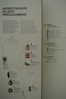 O museu é relativamente pequeno, sem aquela sensação de “era só isto?”, e bem organizado. Apresenta-se como sendo “dedicado à promoção e valorização do que foi a América antes de Colombo”, e a colecção é apresentada pelas diferentes áreas culturais em duas exposições permanentes: América pre-colombina na arte (dividida por regiões como a Mesoamérica, Caribe, Amazonas, Andes) e Chile antes do Chile.