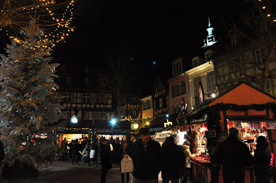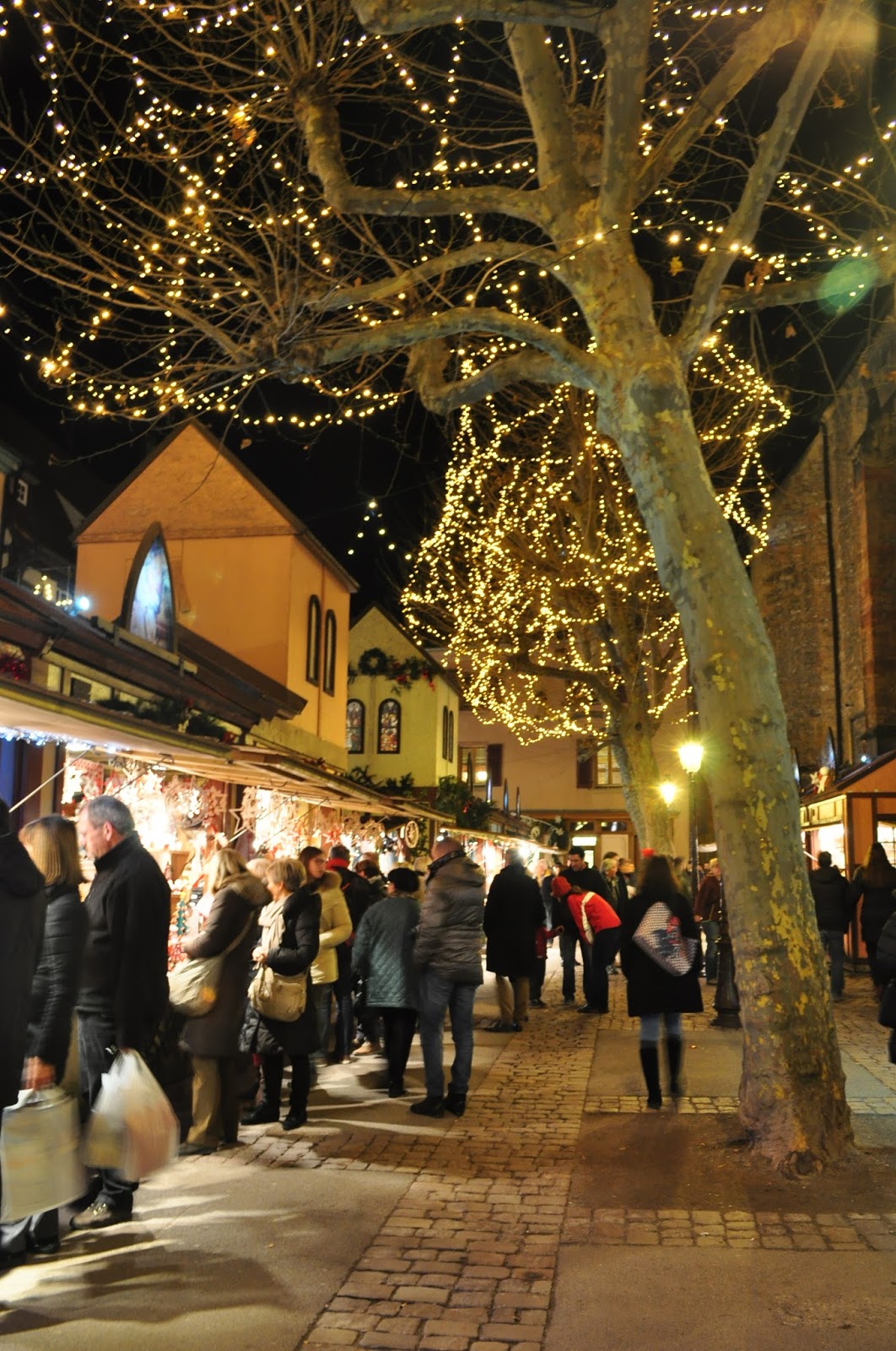 Achei o mercado de Natal de Colmar diferente de todos os outros que já tinha visitado, claro que havia barraquinhas nas ruas (principalmente nas pracinhas) onde se podia beber Vin Chaud, comer um crepe ou comprar decorações de Natal, mas o forte era mesmo o espírito da cidade, a decoração das lojas e o ar de satisfação das milhares de pessoas que andavam pelas ruas.