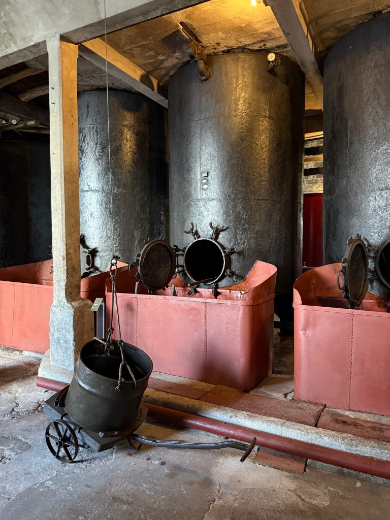 Outro ponto fundamental é a visita ao Museu da antiga Fábrica da SIBIU. Ali, a baleação deixa de ser um conceito abstrato e passa a ser concreta: máquinas, espaços, ferramentas e explicações que mostram o que era a indústria por dentro, sem filtros, no local onde tudo acontecia chegados a terra.
