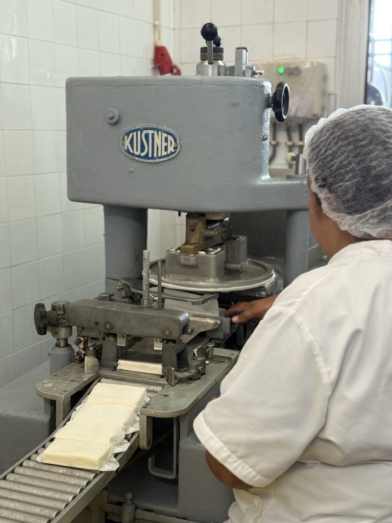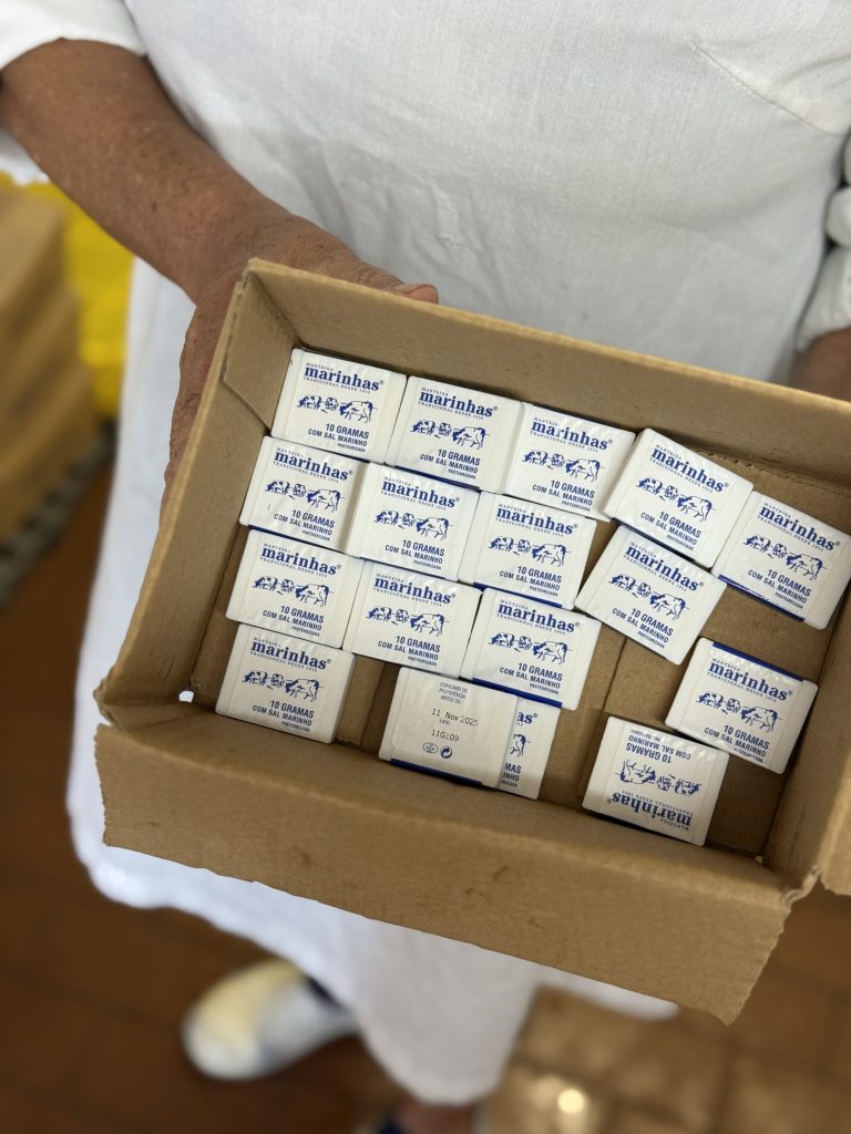 Mas o mais surpreendente durante toda a visita foi perceber que a manteiga, produto pelo qual muitos conhecem a Marinhas, nasceu como subproduto. A gordura retirada no processo de desnatação foi aproveitada com engenho e respeito pela matéria-prima. A manteiga nunca foi o objetivo principal, mas sim uma consequência natural de um processo que privilegia o sabor e a tradição. Ainda assim tornou-se um dos produtos mais procurados da Marinhas.